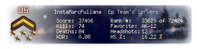 | Headshots | 12 | Suicides | 0 | Headshot / Kill | 16.22 % |