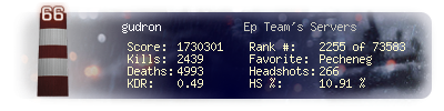 | Headshots | 266 | Suicides | 29 | Headshot / Kill | 10.91 % |