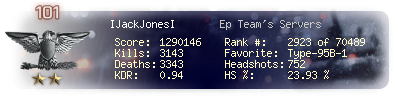 | Kill-streak | 15 | Death-streak | 16 | Team Kills | 0 |