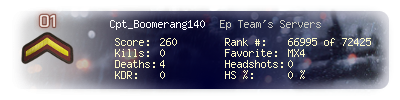 | Kill-streak | 0 | Death-streak | 6 | Team Kills | 0 |