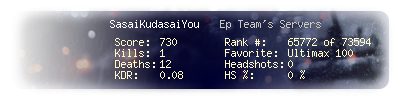 | Kill-streak | 1 | Death-streak | 8 | Team Kills | 0 |