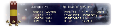 | Headshots | 291 | Suicides | 14 | Headshot / Kill | 14.86 % |