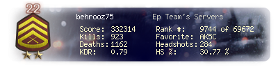 | Headshots | 187 | Suicides | 7 | Headshot / Kill | 30.91 % |