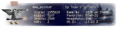 | Kills | 5107 | Deaths | 2549 | Kill / Death | 2 |