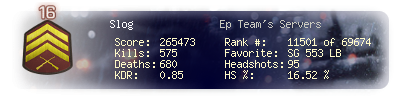 | Kills | 575 | Deaths | 680 | Kill / Death | 0.85 |