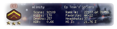 | Kills | 110 | Deaths | 176 | Kill / Death | 0.63 |