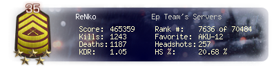 | Headshots | 183 | Suicides | 7 | Headshot / Kill | 20.61 % |