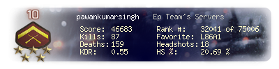 | Kill-streak | 4 | Death-streak | 12 | Team Kills | 0 |