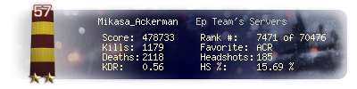 | Kills | 133 | Deaths | 326 | Kill / Death | 0.41 |
