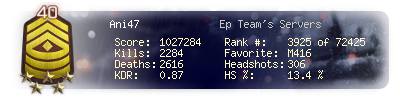 | Headshots | 306 | Suicides | 33 | Headshot / Kill | 13.4 % |