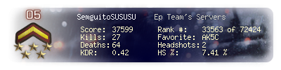 | Kills | 27 | Deaths | 64 | Kill / Death | 0.42 |