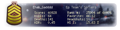 | Kills | 64 | Deaths | 141 | Kill / Death | 0.45 |