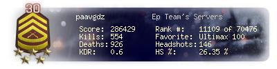 | Headshots | 140 | Suicides | 12 | Headshot / Kill | 26.07 % |