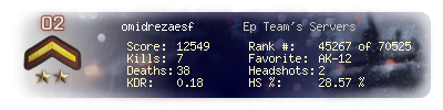 | Headshots | 5 | Suicides | 0 | Headshot / Kill | 20 % |