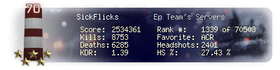 | Kills | 8753 | Deaths | 6285 | Kill / Death | 1.39 |