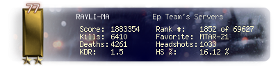 | Headshots | 124 | Suicides | 11 | Headshot / Kill | 17.49 % |