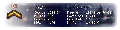 | Headshots | 37 | Suicides | 3 | Headshot / Kill | 10.98 % |