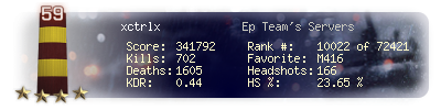| Kills | 702 | Deaths | 1605 | Kill / Death | 0.44 |