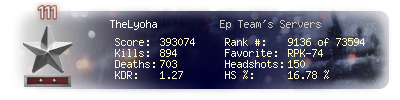 | Kill-streak | 9 | Death-streak | 6 | Team Kills | 1 |