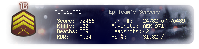 | Kill-streak | 3 | Death-streak | 16 | Team Kills | 0 |