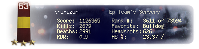 | Headshots | 345 | Suicides | 36 | Headshot / Kill | 28.19 % |