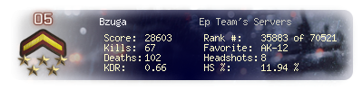 | Headshots | 7 | Suicides | 0 | Headshot / Kill | 16.67 % |