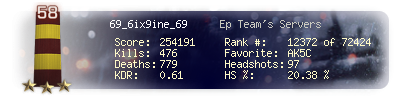 | Headshots | 96 | Suicides | 10 | Headshot / Kill | 20.34 % |
