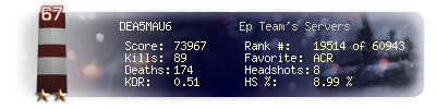 | Kills | 89 | Deaths | 174 | Kill / Death | 0.51 |