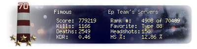 | Headshots | 4 | Suicides | 5 | Headshot / Kill | 5.13 % |