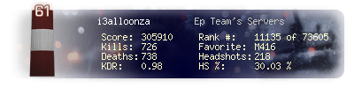 | Kill-streak | 5 | Death-streak | 14 | Team Kills | 0 |