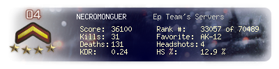| Kill-streak | 2 | Death-streak | 22 | Team Kills | 0 |