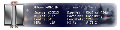 | Kills | 2277 | Deaths | 543 | Kill / Death | 4.19 |