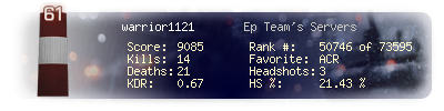 | Kill-streak | 4 | Death-streak | 9 | Team Kills | 0 |