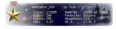 | Kill-streak | 10 | Death-streak | 13 | Team Kills | 0 |