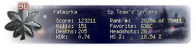 | Kills | 151 | Deaths | 205 | Kill / Death | 0.74 |