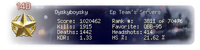 | Headshots | 578 | Suicides | 50 | Headshot / Kill | 20.9 % |