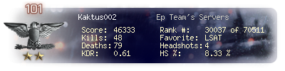 | Kills | 48 | Deaths | 79 | Kill / Death | 0.61 |