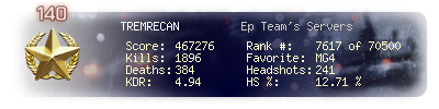 | Kill-streak | 99 | Death-streak | 7 | Team Kills | 4 |