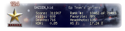 | Kill-streak | 8 | Death-streak | 15 | Team Kills | 0 |