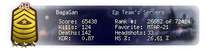 | Headshots | 33 | Suicides | 3 | Headshot / Kill | 26.61 % |