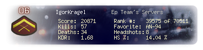 | Kill-streak | 6 | Death-streak | 5 | Team Kills | 0 |