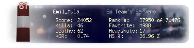 | Kills | 46 | Deaths | 62 | Kill / Death | 0.74 |