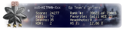 | Kill-streak | 8 | Death-streak | 4 | Team Kills | 0 |