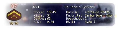 | Kill-streak | 4 | Death-streak | 7 | Team Kills | 0 |
