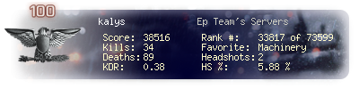 | Kill-streak | 11 | Death-streak | 10 | Team Kills | 0 |