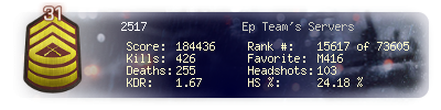 | Headshots | 103 | Suicides | 1 | Headshot / Kill | 24.18 % |