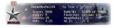 | Kill-streak | 2 | Death-streak | 8 | Team Kills | 0 |