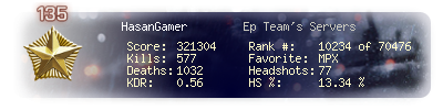 | Kill-streak | 7 | Death-streak | 26 | Team Kills | 0 |