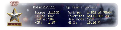 | Kills | 642 | Deaths | 384 | Kill / Death | 1.67 |