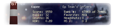 | Headshots | 0 | Suicides | 0 | Headshot / Kill | 0 % |